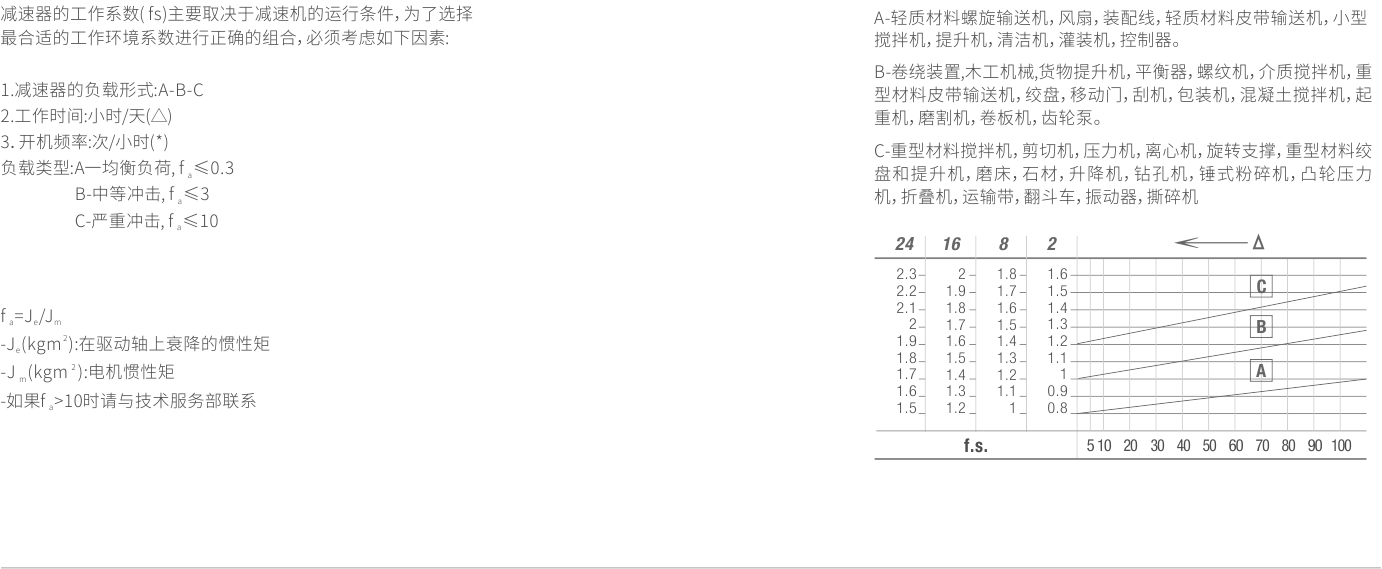 在選擇減速器時(shí)有用。它要考慮實(shí)際需求的扭矩Mr2以及工作系數(shù)fs,由以下關(guān)系式計(jì)算出: